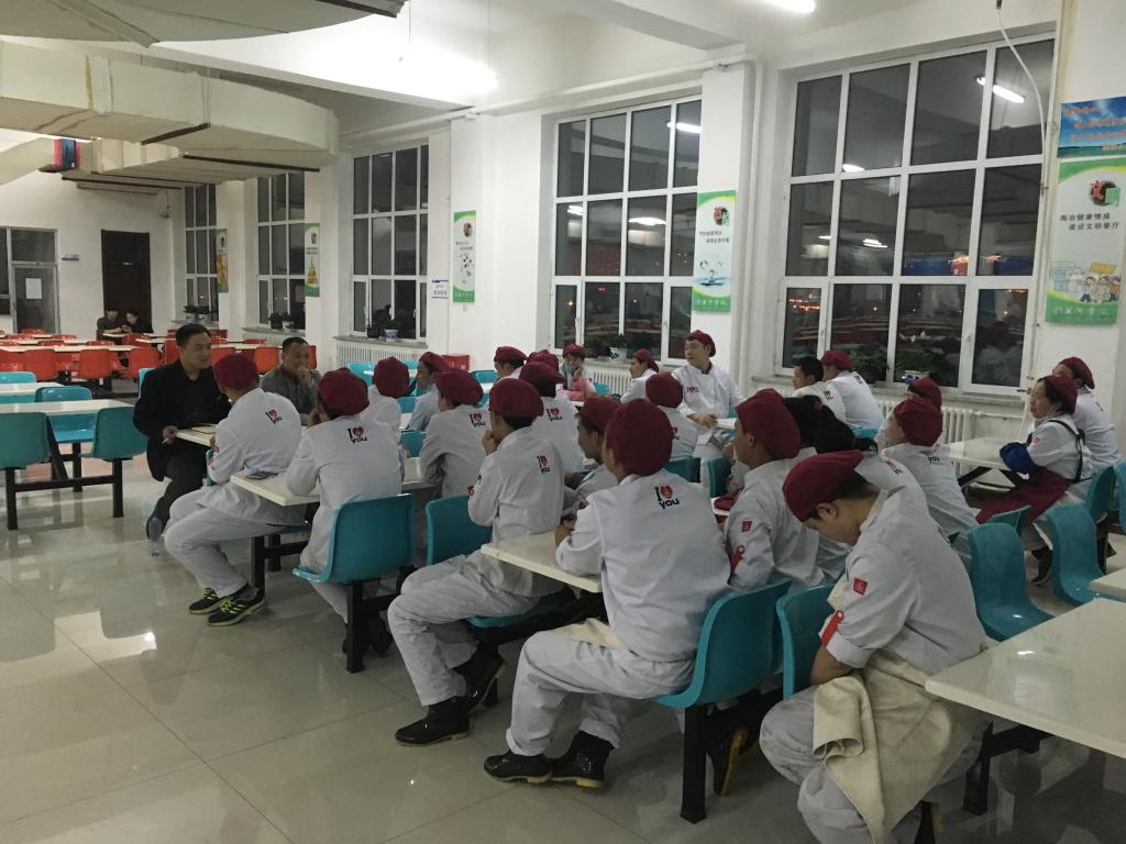餐饮服务中心主任马墨南同志介绍了稻香园餐厅的基本情况、日常工作流程、餐饮考评细则及餐饮规章制度,他强调,各班组工作人员要多方面加强餐厅食品安全工作,要求从业人员切实增强食品安全防范知识、增强食品安全防范意识、提高餐厅安全管理水平,保障学生吃到安全卫生的放心食品。同时希望中快餐厅全体员工通过本次学习能够“学有所得,学有所用”,把学到的知识应用到实际工作中。