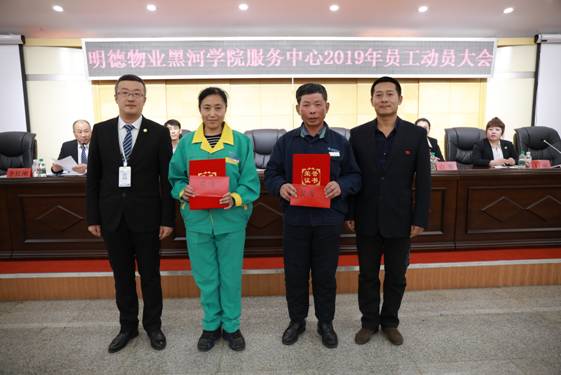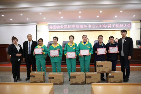为进一步提升后勤保障水平和物业服务品质,4月4日,明德物业黑河学院服务中心在明德楼五楼多功能厅召开2019年员工动员大会。黑河学院后勤管理处副处长马宝发、校园管理科科长侯驰,明德物业黑河分公司总经理吴忠海、项目经理山巍、项目主管李红刚、丁丽及明德物业黑河学院服务中心全体员工参加会议。