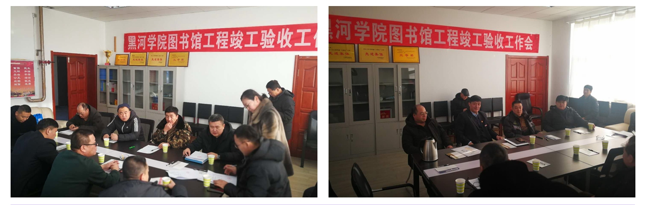 施工单位、设计单位、勘察单位、监理单位分别结合各自职责汇报了工程建设各个环节施工情况、监理检查执行情况,并按照验收方案,依据施工合同、国家有关法律法规、工程设计图纸和相关规范,对图书馆工程的土建、安装和资料等内容进行了验收。黑河市工程质量监督站副站长尚福林、监督组组长张文辉对竣工验收会进行了全程监督,验收过程真实、公开、科学、公正。会上,五大责任主体共同得出评估结论:黑河学院新图书馆建筑端庄典雅,内敛大气,工程全过程管理符合国家基本建设程序,执行现行法律法规和强制性条文,满足设计要求,符合国家验收标准,一致同意通过竣工验收。