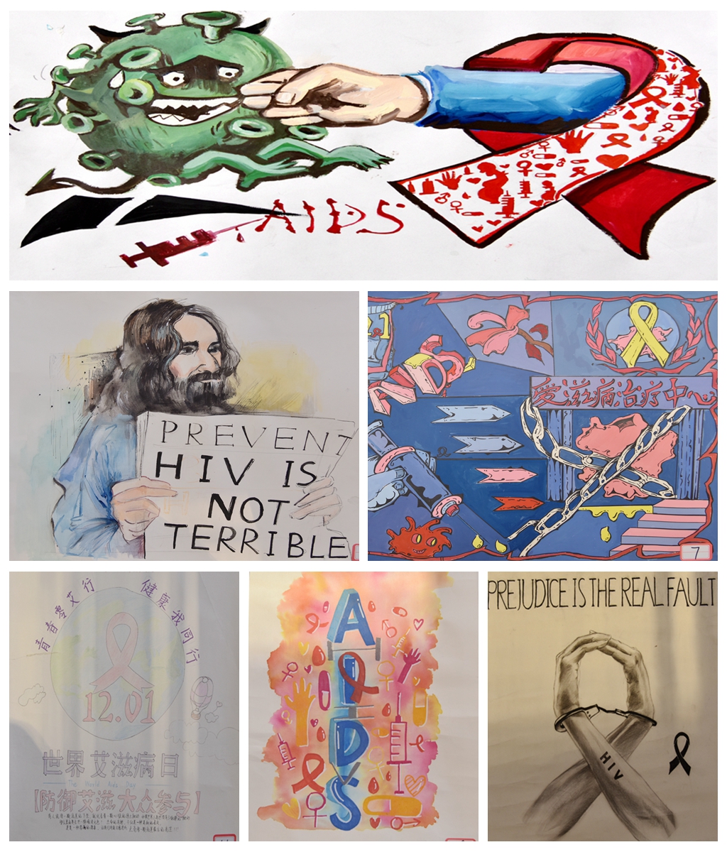 学生们用彩铅、水彩、素描等方式画出了“预防艾滋病”的象征物红丝带、艾滋病的防治方法、对艾滋病不加防治的后果及艾滋病防治成功的美好愿景等,画作形象生动,让人印象深刻。经过激烈角逐,美术与设计学院王雅婷获得一等奖,外国语学院王雨、文化旅游学院郭瑞卓获得二等奖,美术与设计学院刘逸梅、蒋昕彤和外国语学院曹欣怡获得三等奖,其他学生获纪念奖。